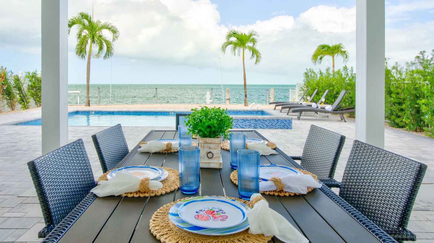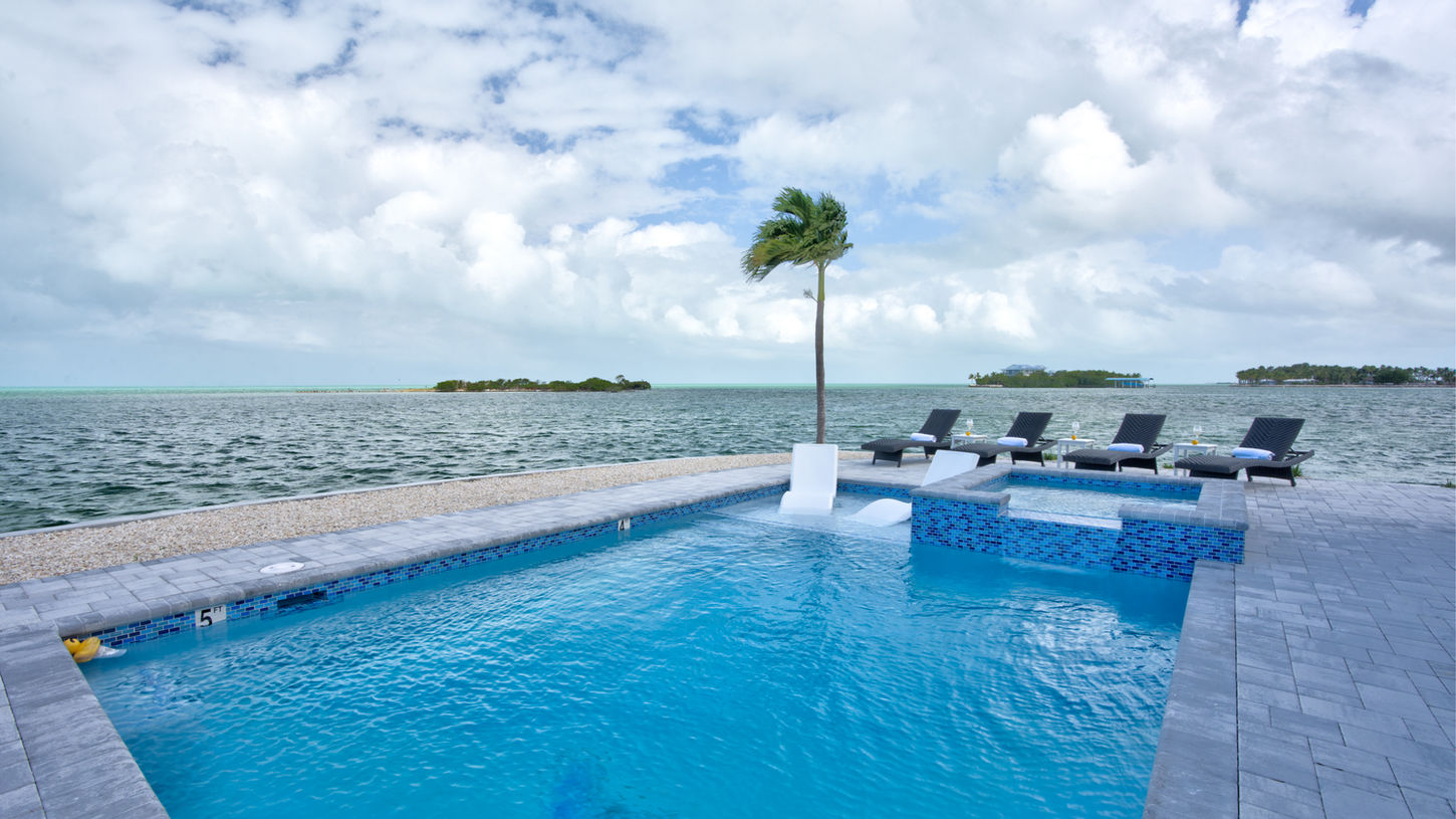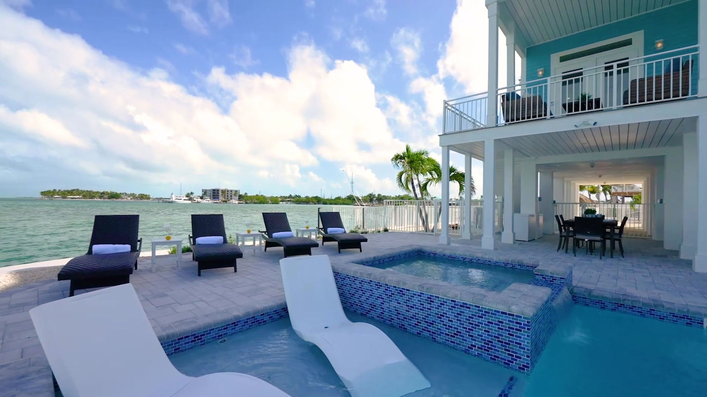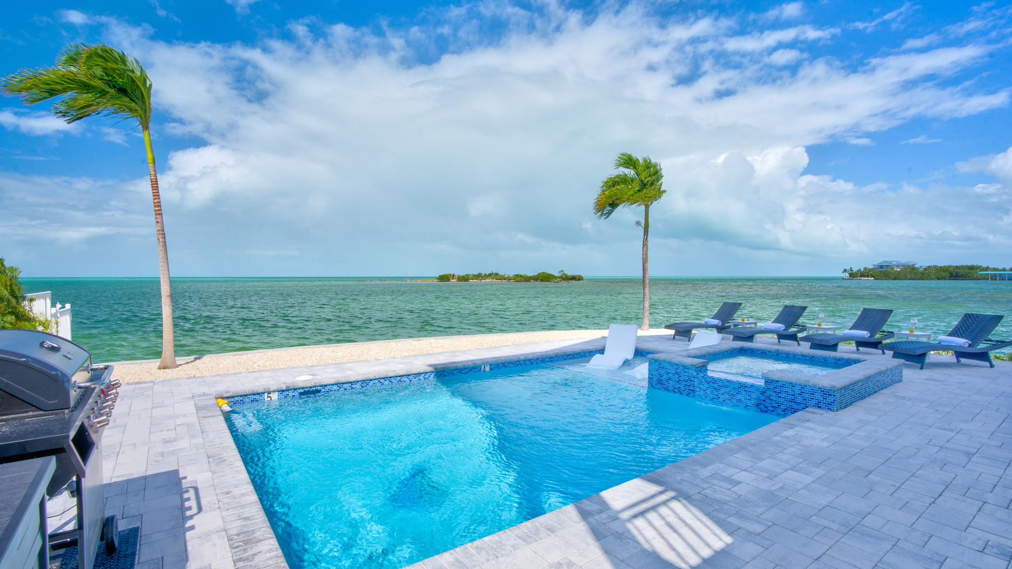 Escape to this new stunning waterfront pool home. Enjoy panoramic ocean views, a private boat dock, with , fishing area, snorkeling, kayaks, paddle boards, bicycles and more.... The spacious, modern interior features a fully equipped kitchen, cozy bedrooms, and an open living area perfect for relaxation.